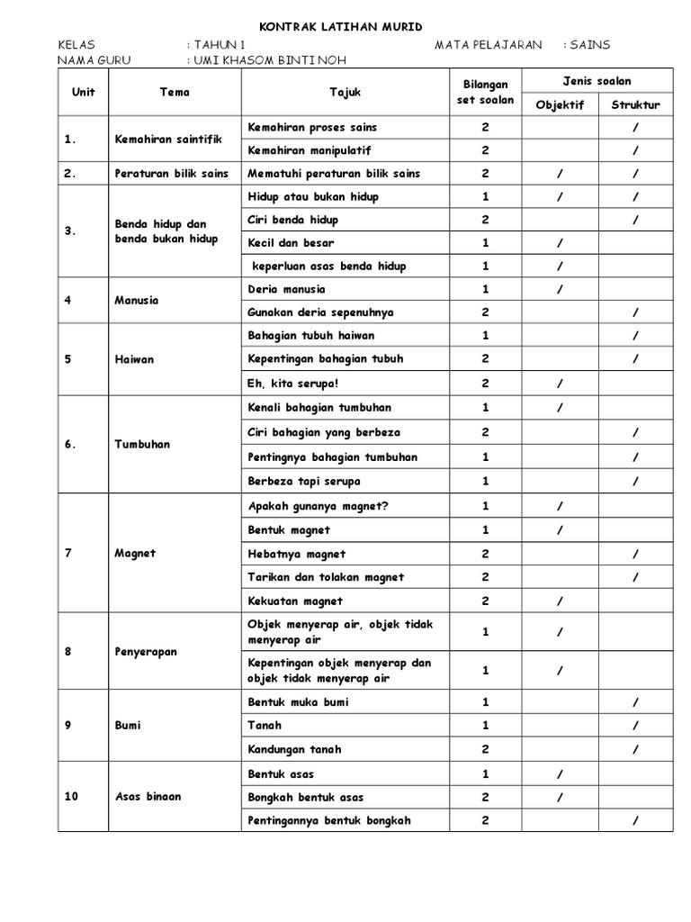 Pbs Kssr Sains Teknologi Tahun 1 Cute766