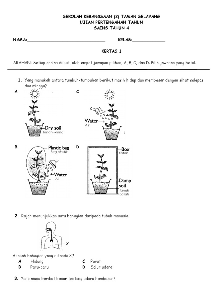 Ujian Pertengahan Tahun Sains Kertas 1 Tahun 4 2016 By Nik