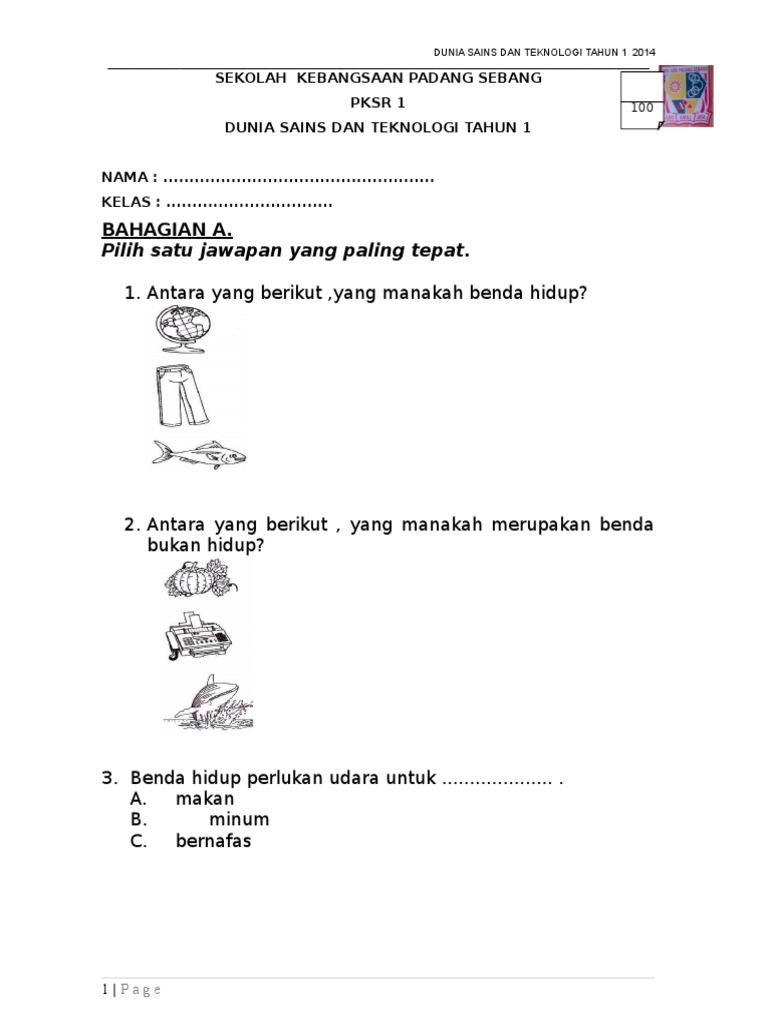 Pksr Dunia Sains Dan Teknologi Tahun 1