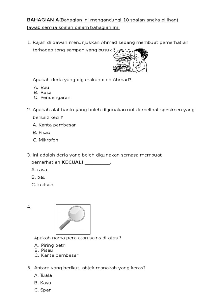 Soalan Sains Tahun 1 Pertengahan Tahun