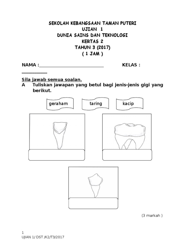 Soalan Dst Tahun 3 Ujian 1 Kertas 2 2017
