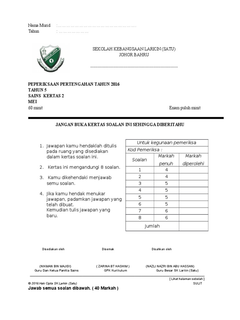 Doc Ujian Pertengahan Tahun 2015 Sains Tahun 5 Arif Atoz Academia Edu