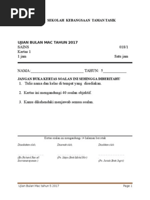 Soalan Ujian Bulanan Sains Tahun 5 2019 Helowins