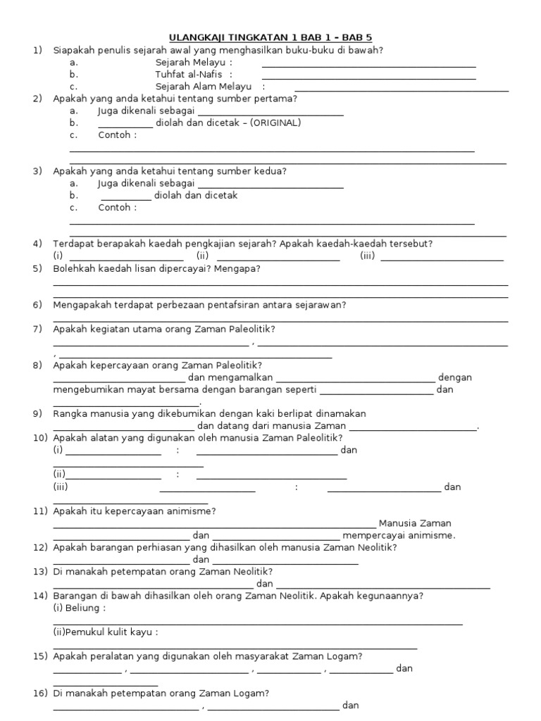 Koleksi Soalan Pdpr Sejarah Kssm Tingkatan 1