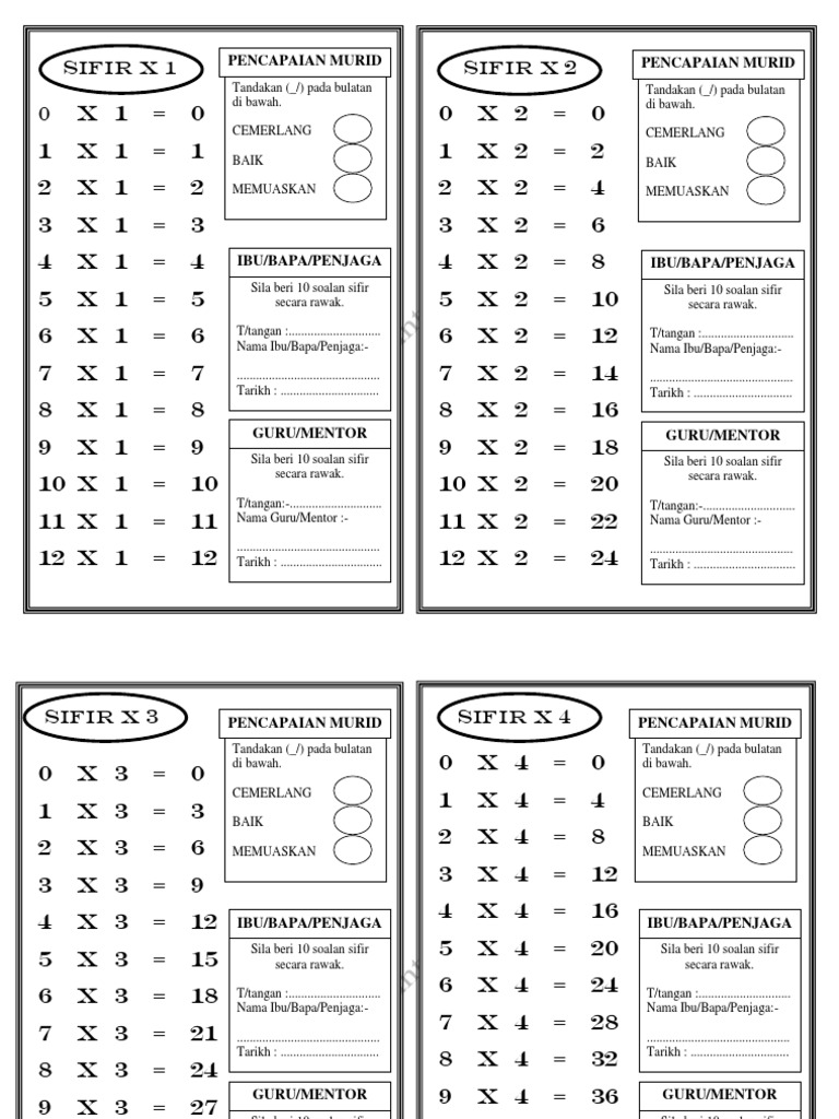 Lembaran Kerja Sifir Darab Boleh Cetak Lembaran Kerja Matematik