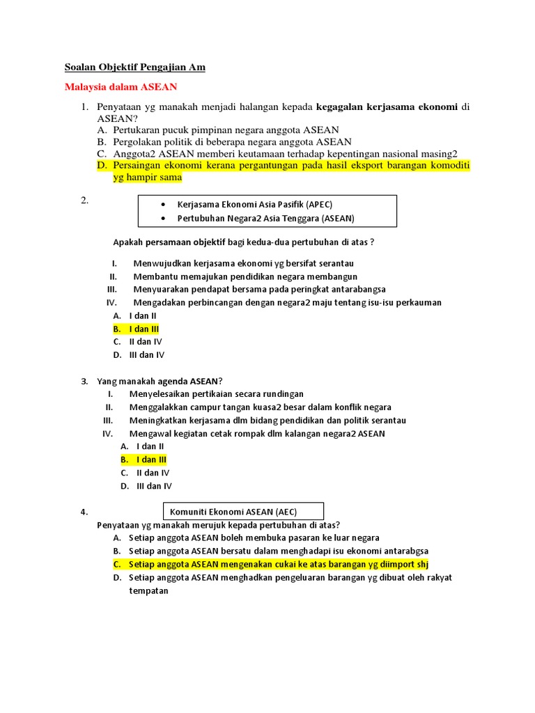 Soalan Objektif Pengajian Am Asean Docx