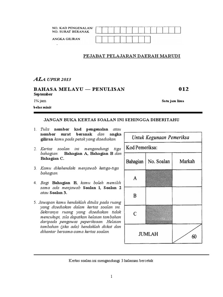 012 Bahasa Melayu Penulisan Kertas Bahasa Melayu Penulisan Upsr Ini Mengandungi Tiga Bahagian Iaitu Bahagian A Bahagian B Dan Bahagian C Pdf Download Gratis