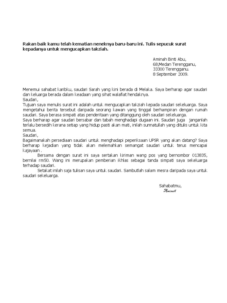 Contoh Karangan Surat Tidak Rasmi Format Spm Surat R