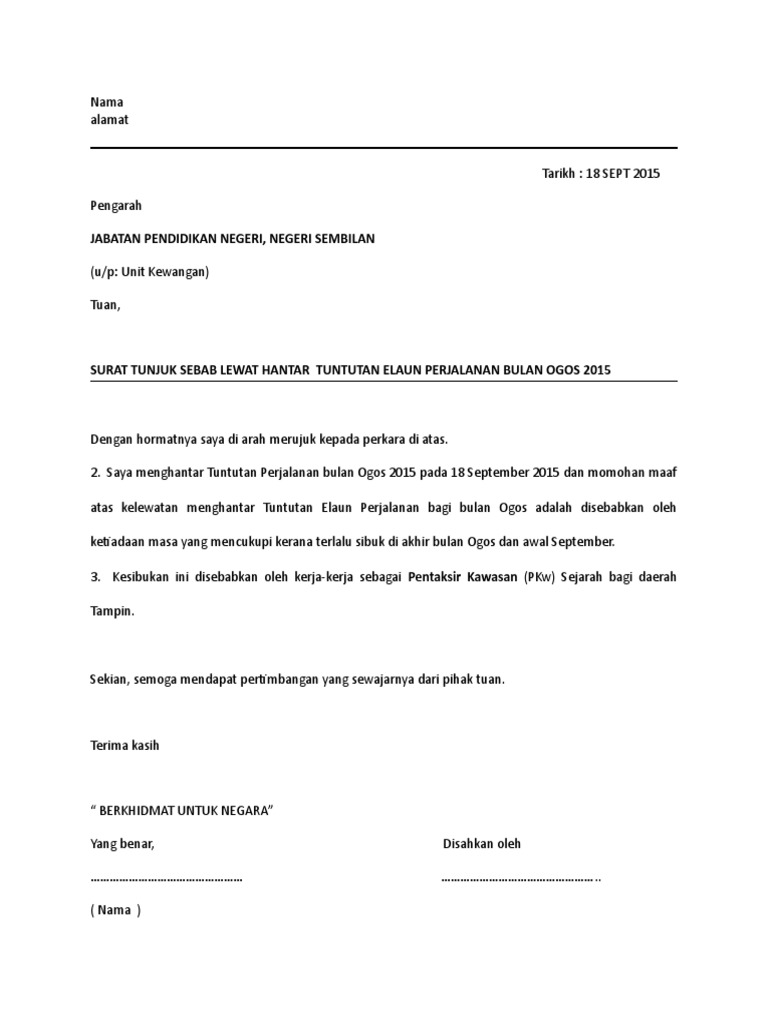 Contoh Surat Tunjuk Sebab Lewat Hantar Tuntutan Cute766