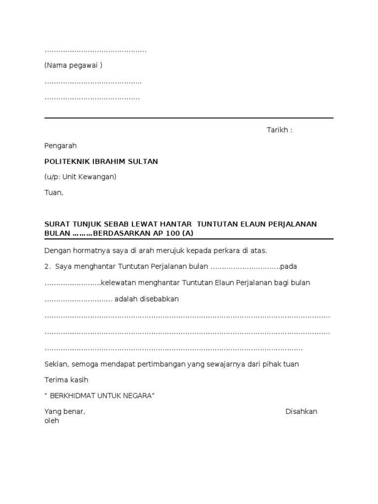 Contoh Surat Tunjuk Sebab Lewat Hantar Tuntutan Surat Petunjuk The Rules