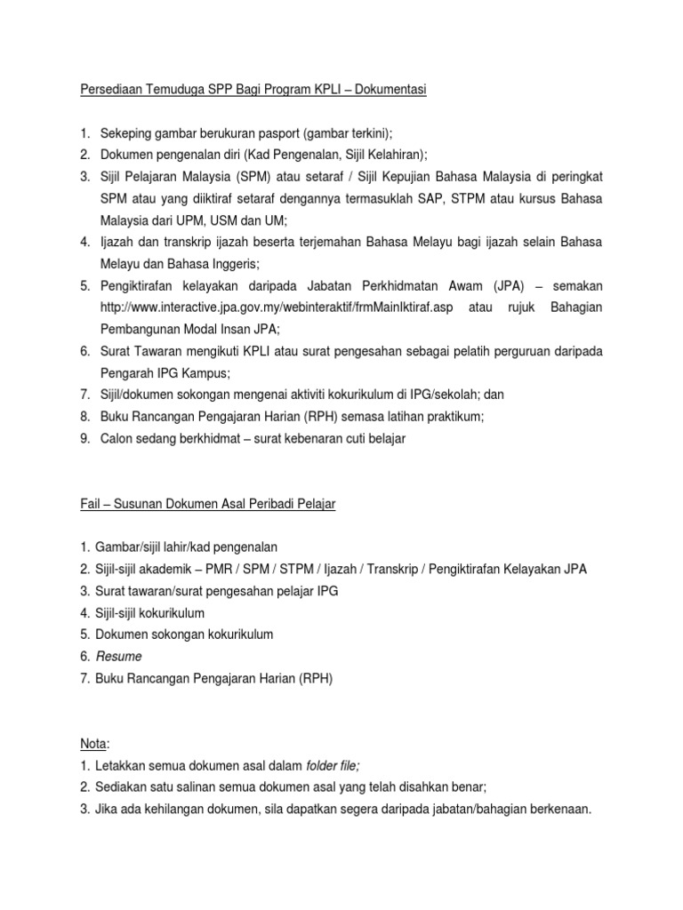 Persediaan Temuduga Spp Bagi Program Kpli Dokumentasi