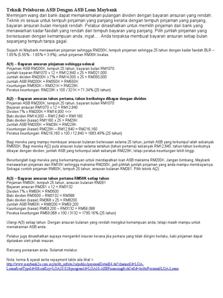 Teknik Pelaburan Asb Dengan Asb Loan Maybank