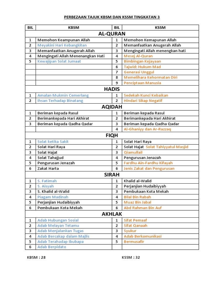 Doc Tajuk Pendidikan Islam Tingkatan 1 Kbsm Vs Kssm Bil Tajuk Kbsm Tajuk Kssm Tilawah Al Quran Jabar Sedek Academia Edu
