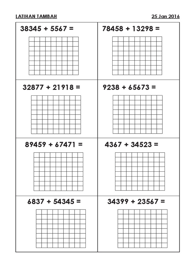 Latihan Tambah Matematik Tahun 3
