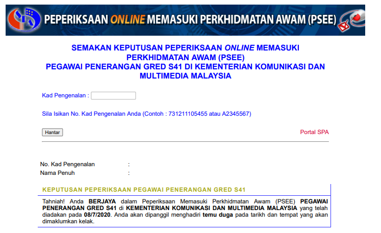 Semakan Spa Keputusan Peperiksaan Dan Temuduga Permohonan My