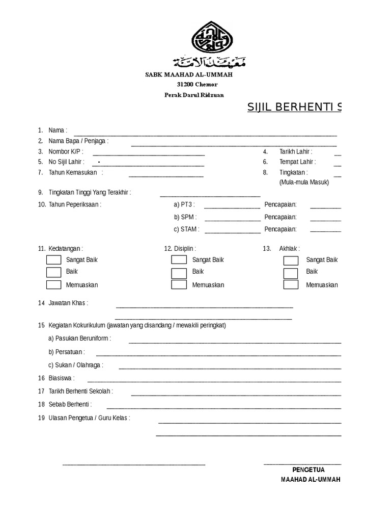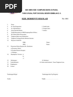 Copy Of Template Sijil Berhenti Sekolah Zul Zames Academia Edu