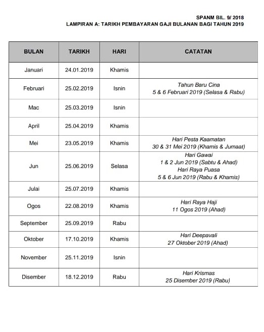 Jadual Pembayaran Gaji Penjawat Awam Tahun 2019 Ciktie Dot Com