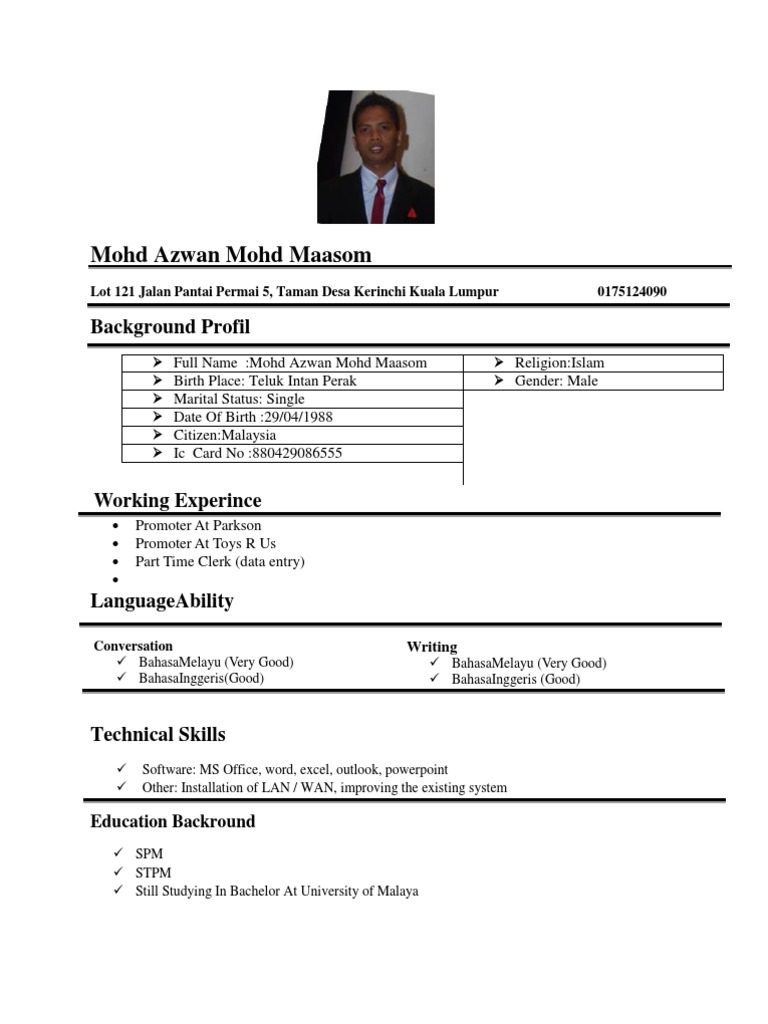 Contoh Resume Mohon Kerja Bahasa Melayu Resume For You