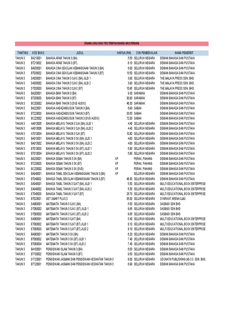 Senarai Judul Buku Teks Terbitan Baharu Arus Perdana Bahasa Bahasa Bahasa Di Asia Tenggara Asia Tenggara