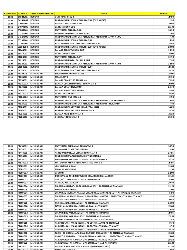 Senarai Buku Teks Tingkatan 4 2020