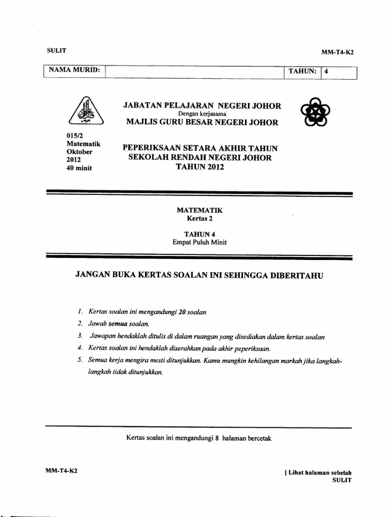 Ujian Pertengahan Tahun Kertas 1 Matematik Tahun 4 Teaching Preschool Math Teaching